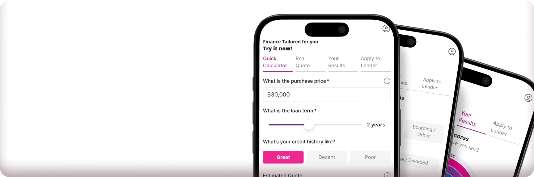 A complete, digital finance journey built for the showroom. Enable customer self-serve, simplify sales workflows, and drive higher finance penetration — online and in-dealership.